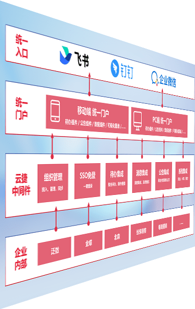 对协作平台提供支持服务,,,支持企业应用与协作平台对接,,,包含组织同步、、、、消息集成、、、待办集成等。。。。支持目前主流的协作平台:钉钉、、、、企微和飞书。。。